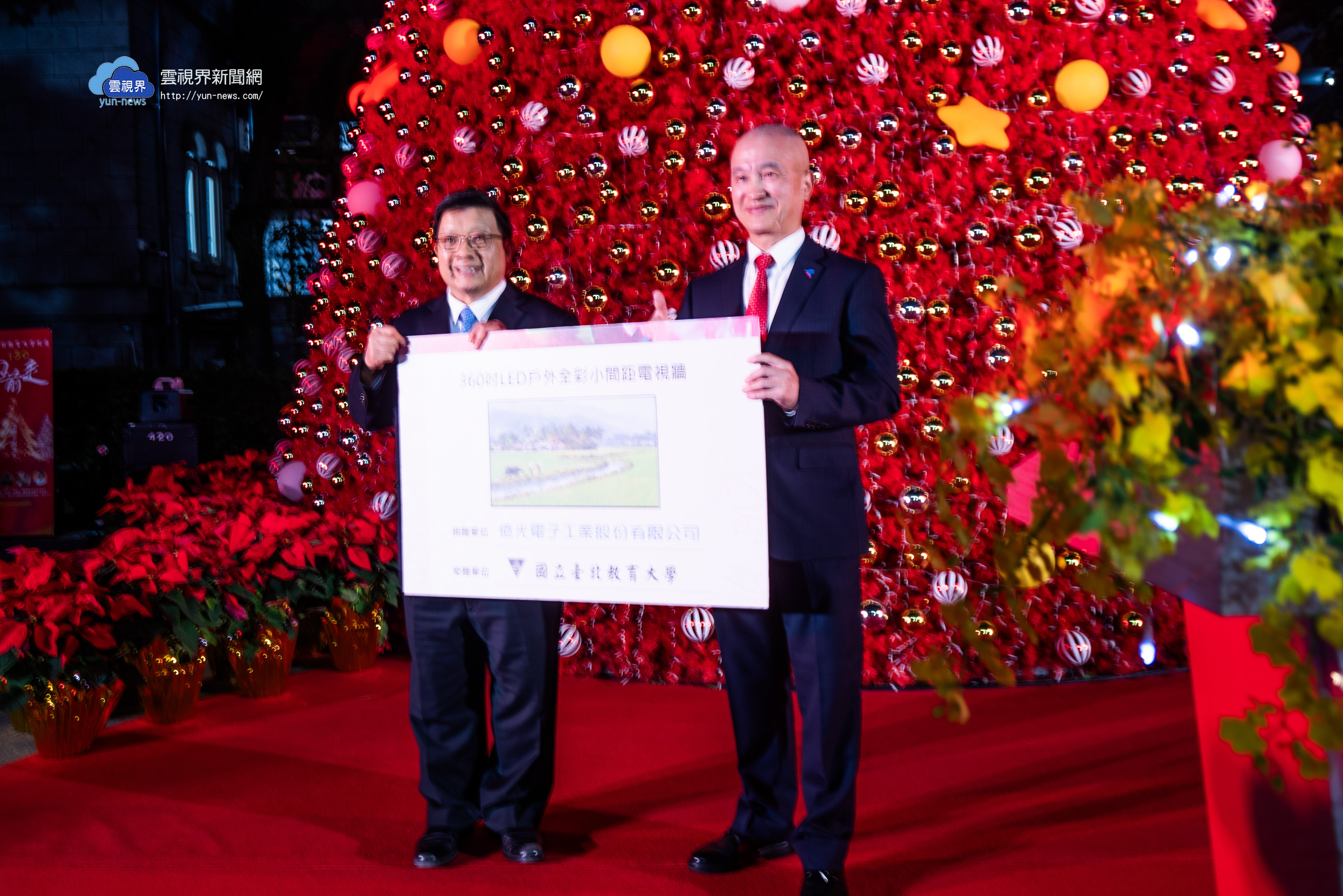 2_ 億光文化基金會葉寅夫董事長夫婦感謝國北教大 捐贈「360吋LED戶外全彩電視牆」
