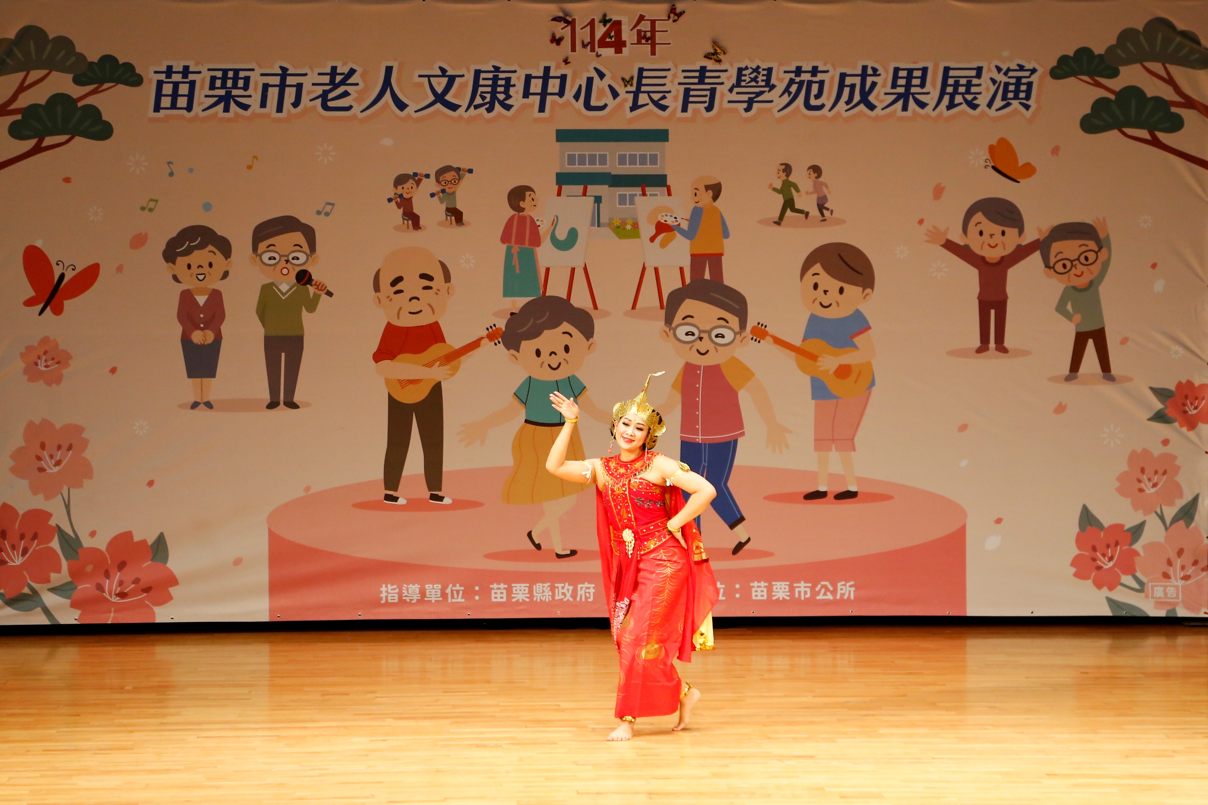 成果活動開場特別邀請苗栗縣VIP新住民協會鄭尤莉老師帶來印尼孔雀舞,優雅而精湛的舞姿,讓在場學員大飽眼福。每週一至週五,位於綠意盎然、環境優美的貓裏山文康中心,已成為長者們最期待的學習天地。這裡不只是上課的地方,更像一個充滿人情味的大家庭。