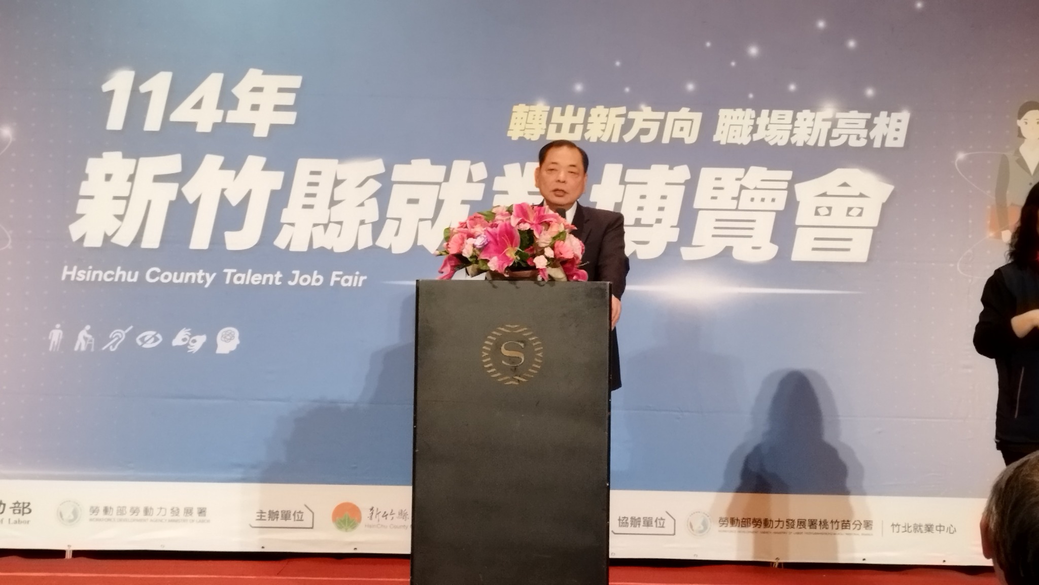 新竹縣副縣長陳見賢表示,新竹縣的勞動力為竹科創造了經濟奇蹟,勞動人口也是桃竹苗地區最多,縣府勞工處於年底舉辦就業博覽會,也期望為縣民媒合就業機會、為企業尋覓合適人才,他祝福現場40間企業及求職者,都能找到理想職缺及合適的工作夥伴。