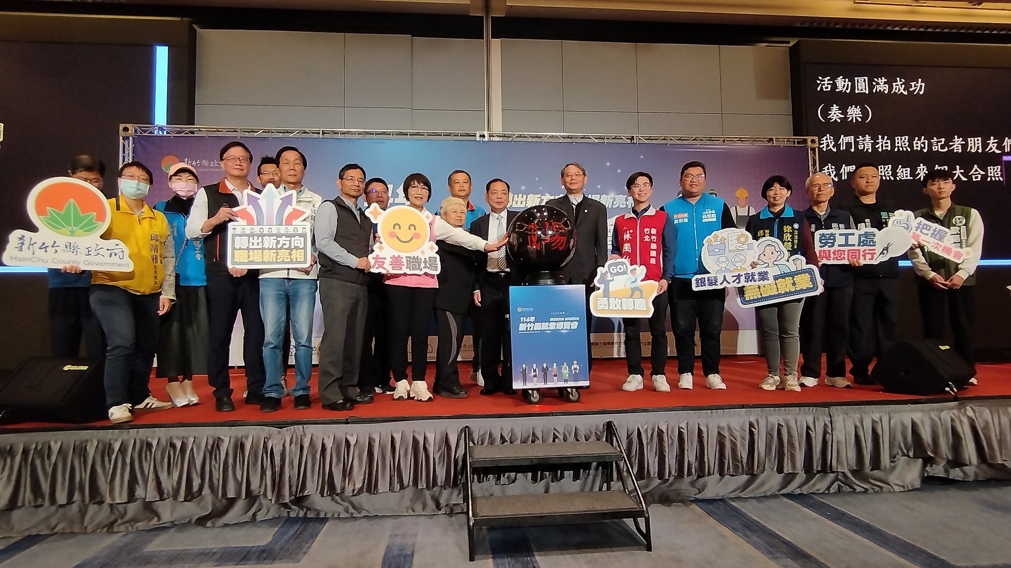 16日就業博覽會由新竹副縣長陳見賢代表縣長楊文科:出席,縣府勞工處長湯紹堂、勞動部勞動力發展署桃竹苗分署分署長賴家仁、桃竹苗區銀髮人才資源中心主任陳怡均、桃竹苗分署竹北就業中心主任陳玉秋、新竹縣總工會理事長陳福俊、新竹縣產業總工會理事長劉興德 等多位貴賓到場為求職者加油打氣,祝福求職者就業成功,在新的起點再接再厲,在屬於自己的舞台一展長才,共同在新竹縣安居樂業。
