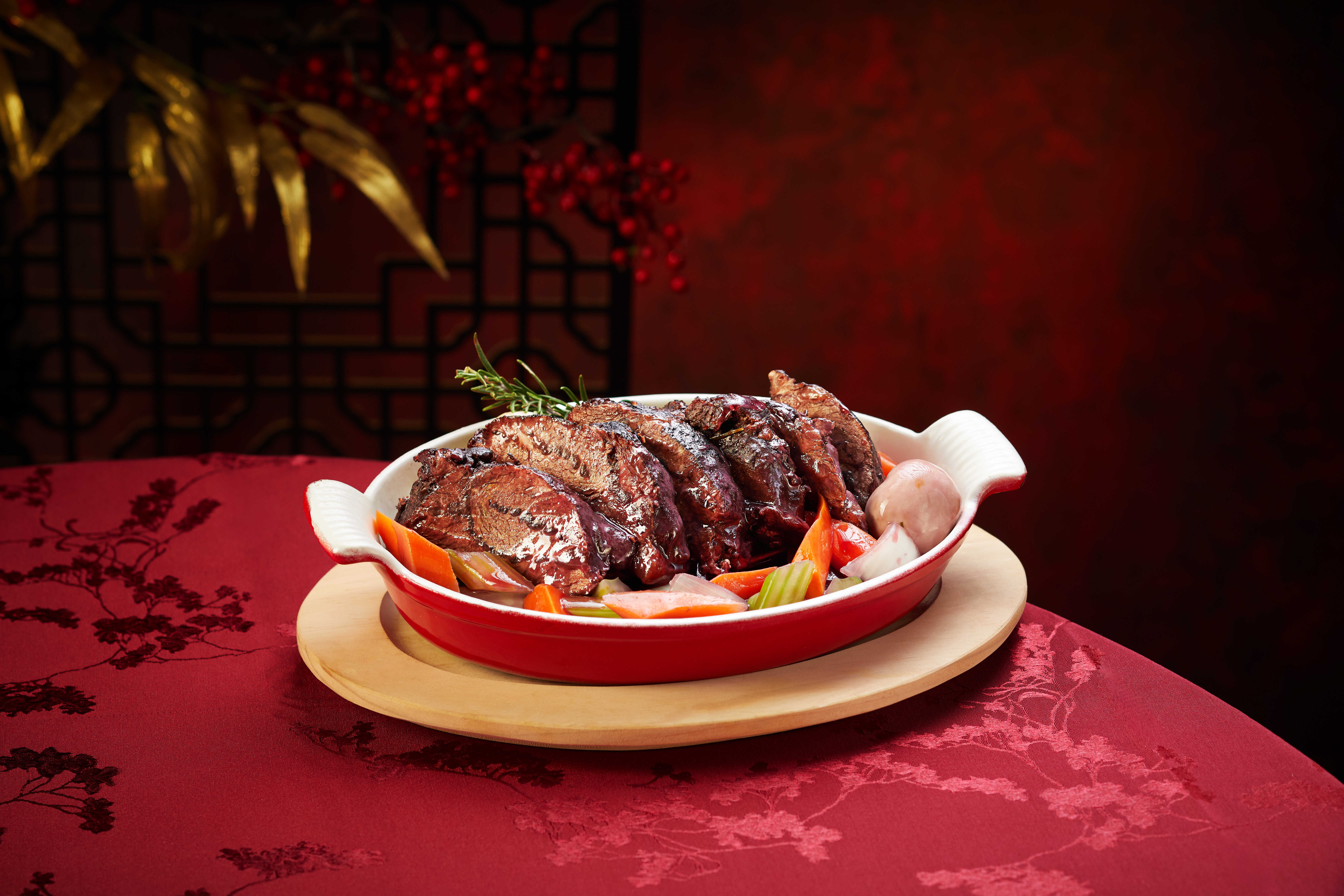 圖7:圓山牛排館主廚廖健皓今年首度推出應景年菜「紅酒燉和牛」,完美呈現食材最純粹而典雅的西式年味,祝願開春迎新,厚福綿延,每份售價3,588元。圖/圓山大飯店提供