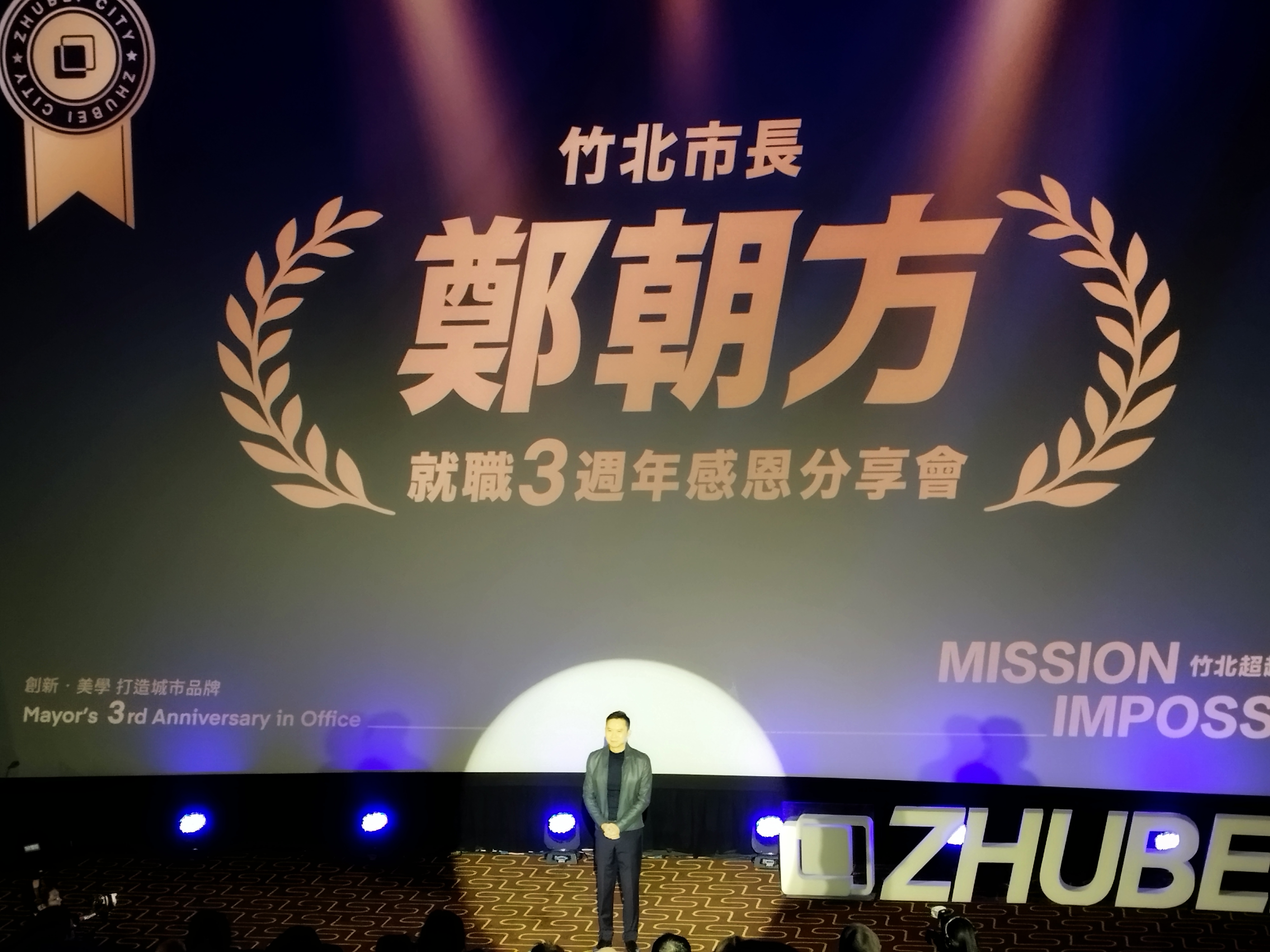 活動一開始,在《不可能的任務》主題音樂中揭開序幕,#竹北市長鄭朝方 一身勁裝登場,象徵上任以來,他與團隊一步步完成外界眼中「不可能的任務」,再次向市民交出一份市政成績單。鄭朝方表示,市政成果無法由自己打分數,交由市民來打分數。他進一步指出,每一項政策與建設,都是對準城市真正的需求,精準回應問題,讓改變成真。