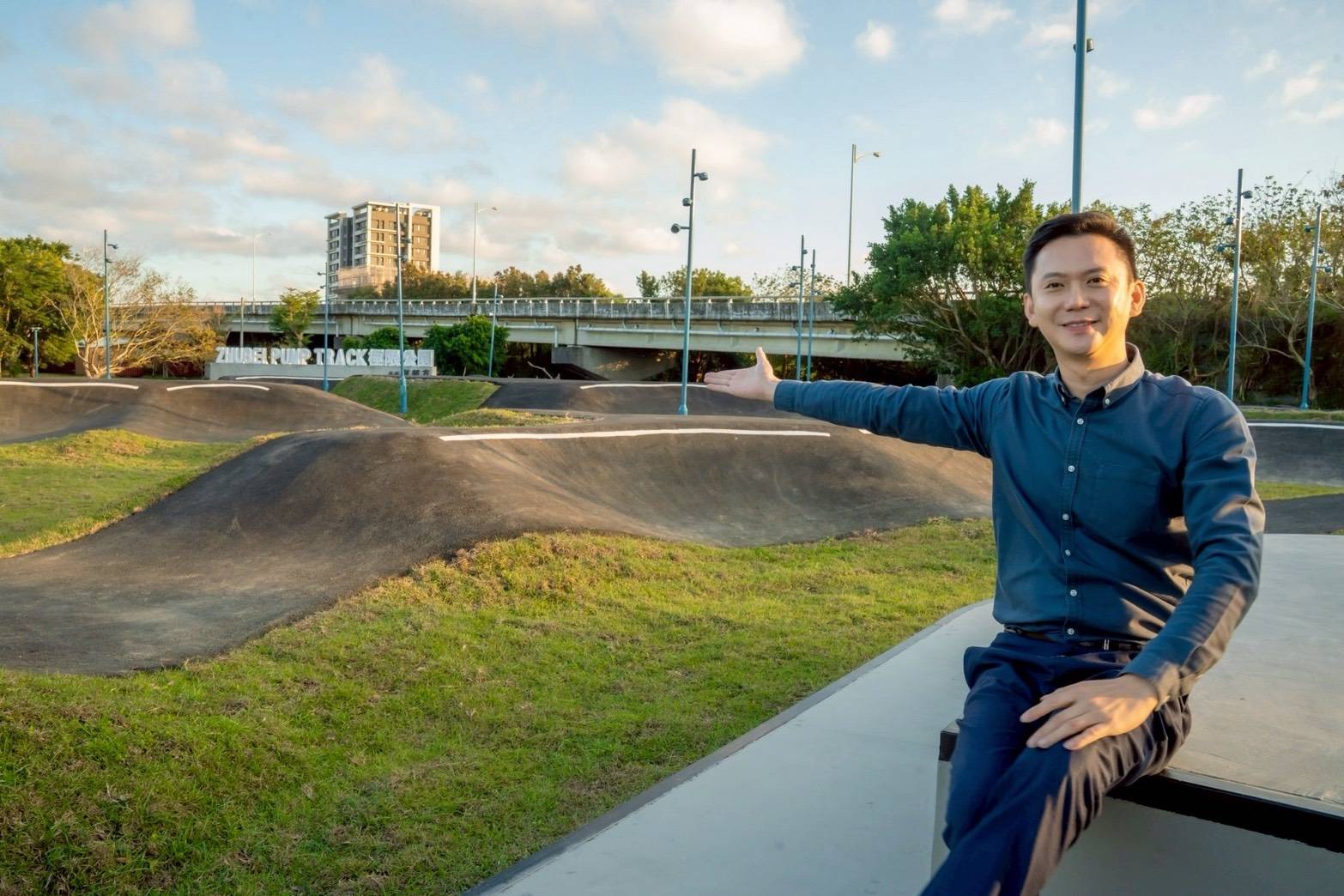 「Zhubei Pump Track 極限公園」正式啟用,現場邀請到極限運動亞洲金牌得主陳翰堃與玩家率先體驗。陳翰堃表示,這並不是一般的滑步車練習場,而是一座充滿挑戰的土坡場,除了擁有全台首座高低差達一點五公尺的設計外,更是全台唯一設有碗公型場地,並且在場地上畫有符合國際專業標準的起跳點符號。他說,今天是他生日,能在生日這天見證台灣擁有如此專業的場地,對他而言就是最好的禮物,也相信未來這裡將成為熱門的極限運動場地。