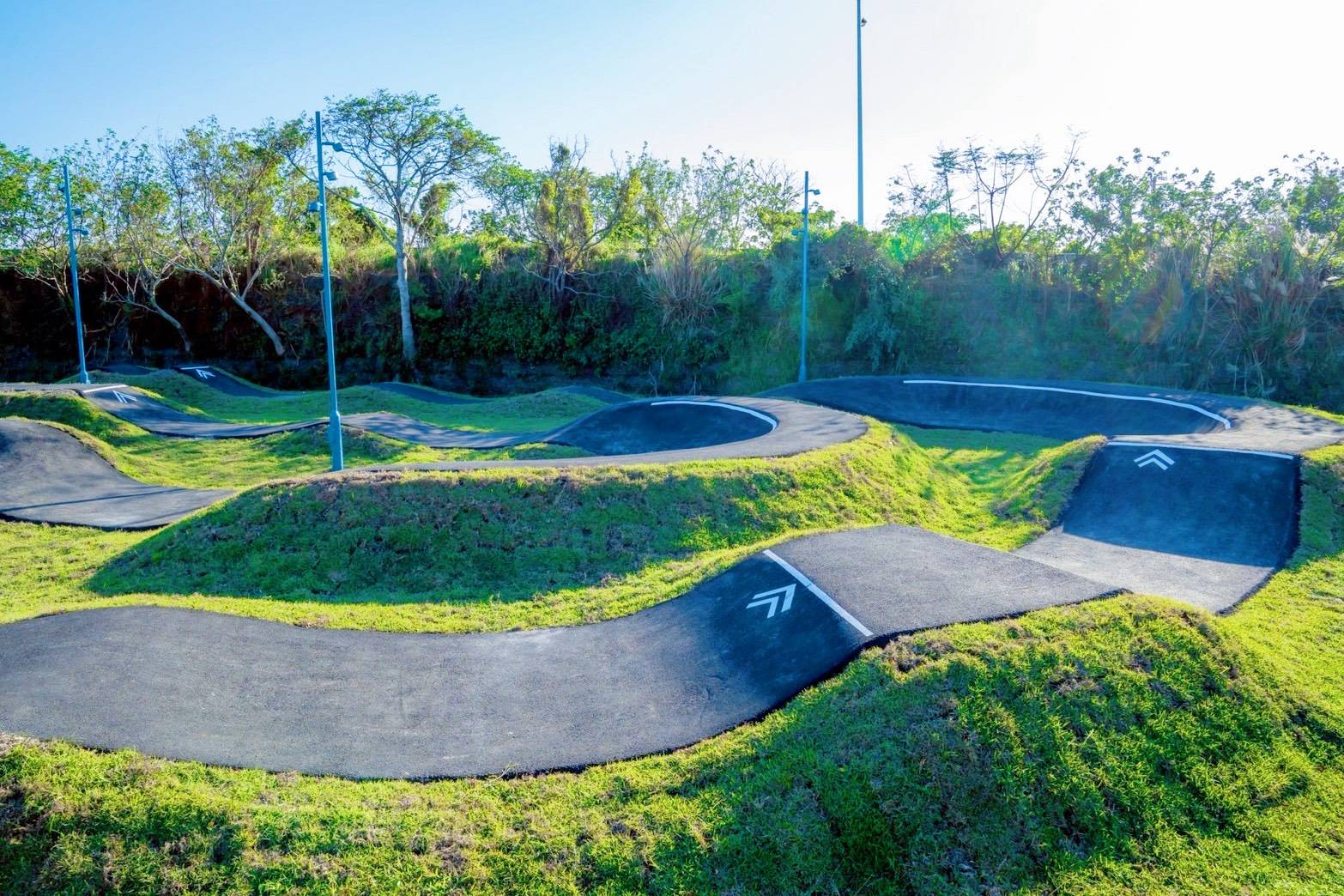 這座公園特別邀請國外專業顧問參與規劃,賽道設計起伏多變,總長度達318公尺,整體練習面積約1,200平方公尺,提供滑板車、BMX、自行車等輪狀運動愛好者盡情騎乘。不過,具備油門的輪狀運動並不適合在此場地使用。鄭朝方市長也提醒民眾,運動時務必做好安全防護措施,才能安心又盡興地享受極限運動的樂趣。