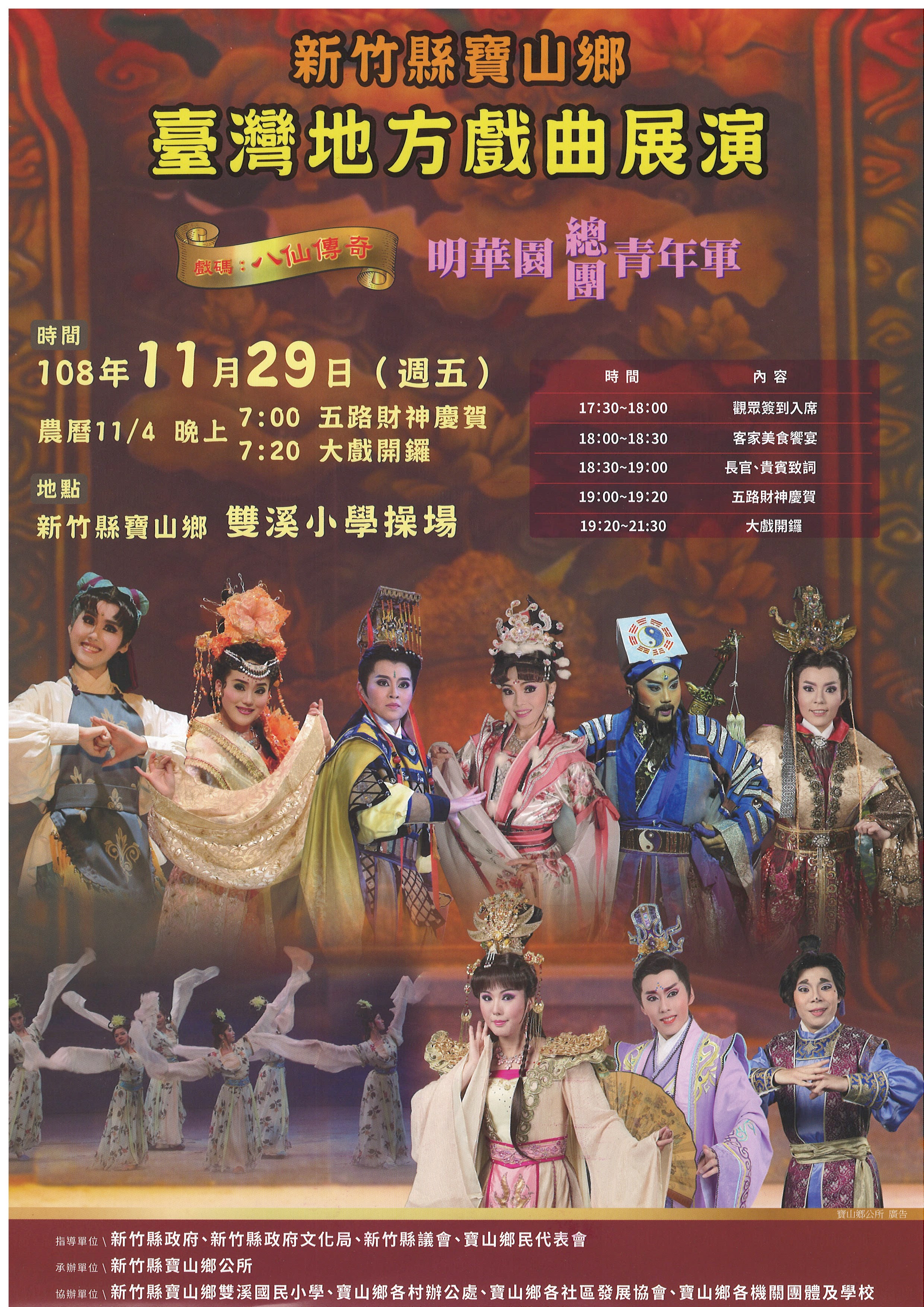 新竹縣寶山鄉臺灣地方戲曲展演-八仙傳奇11/29(五)