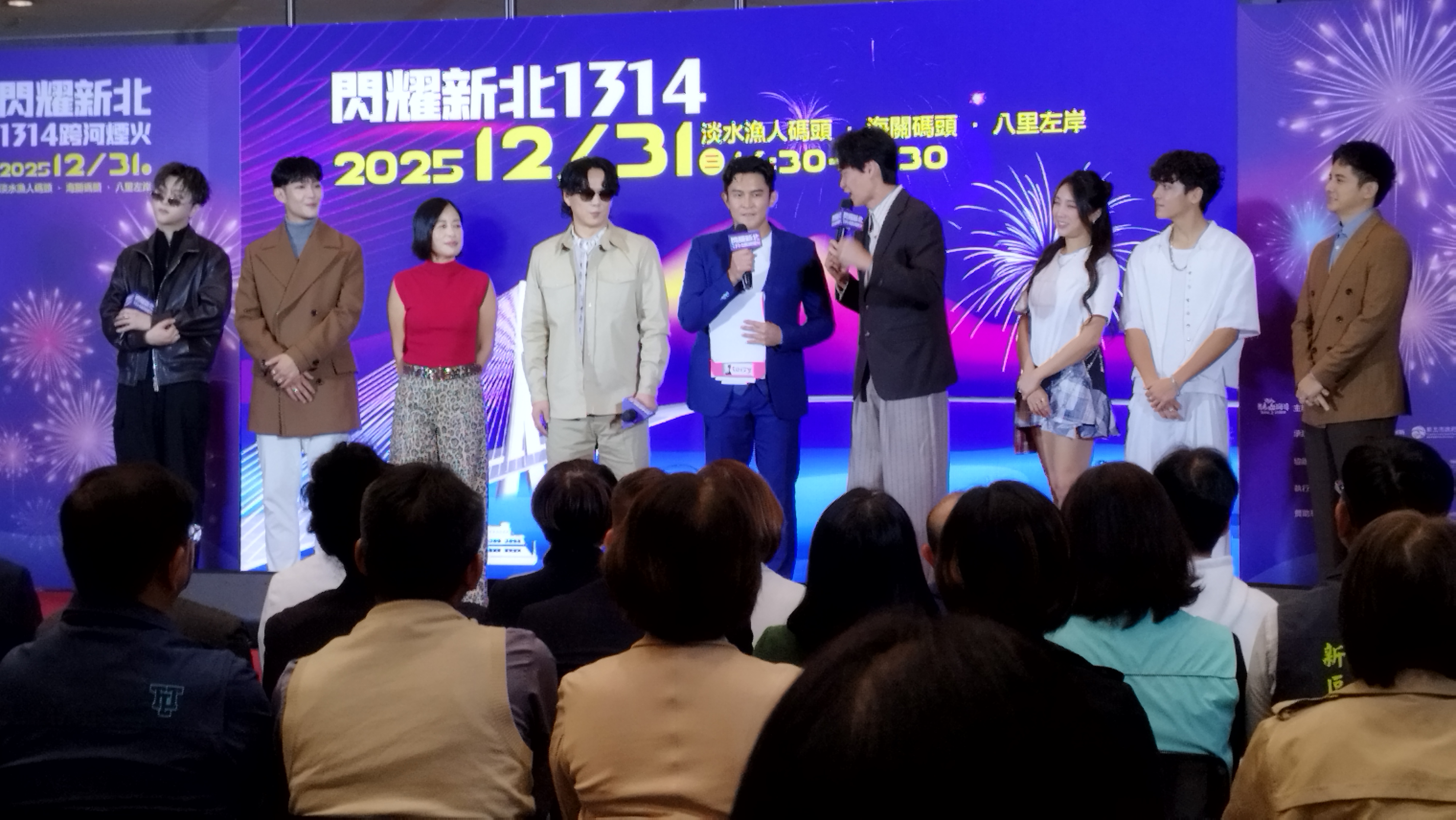 淡水漁人碼頭「星光舞台」由江振愷terry、林姮均聯手主持,並邀請韓國人氣天后MAMAMOO成員華莎壓軸演出,而今年也特別新增八里舞台,八里左岸「星月舞台」由黃鐙輝、曾子余、梁舒涵第三度合體主持,並邀請到日本人氣創作歌手樋口愛,歡迎民眾到淡水欣賞全臺最早迎接2026年的跨年煙火。