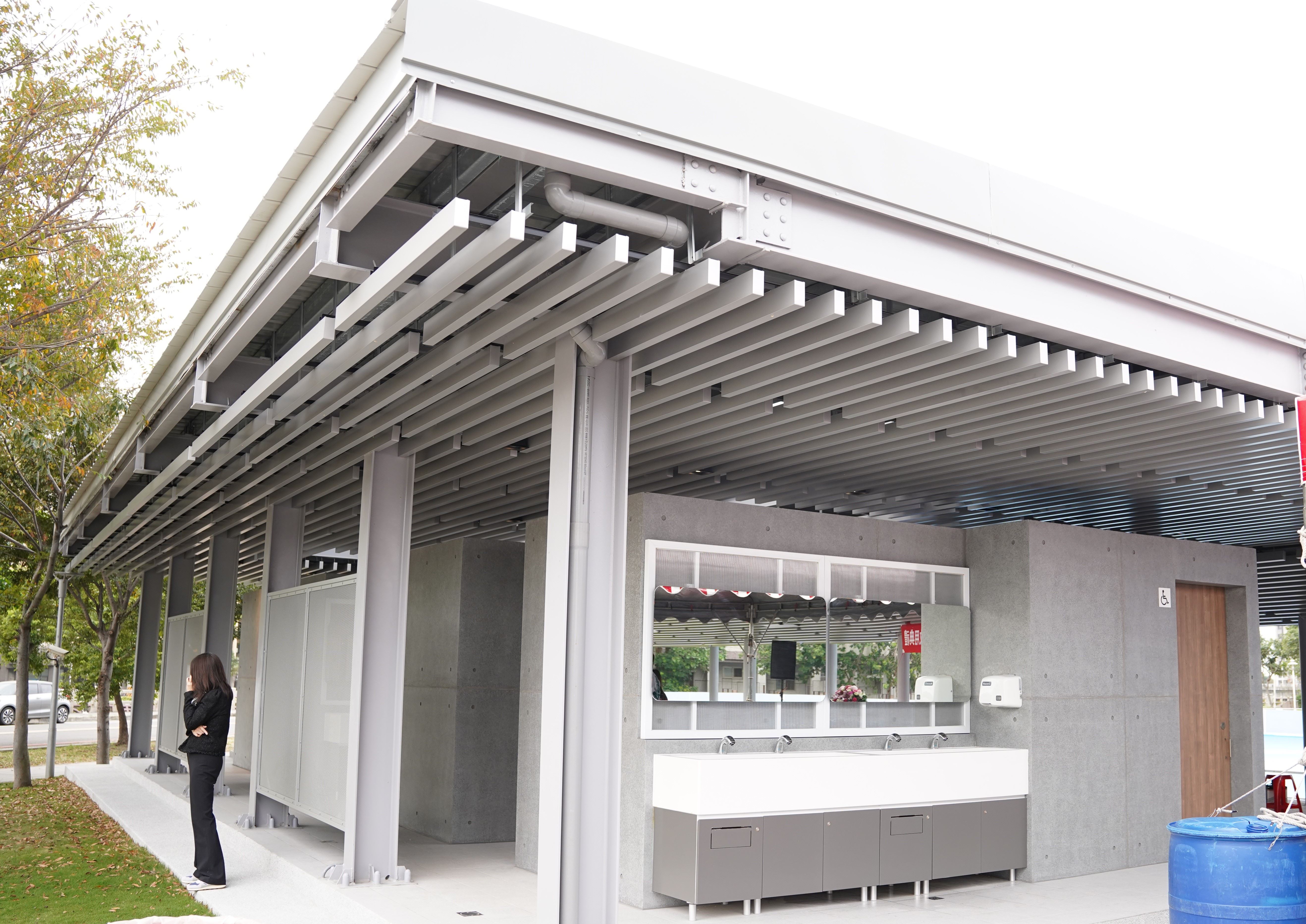 教育局指出,竹北溜冰場自啟用以來,為縣內推廣滑輪運動及休閒活動的重要場域。然而,隨著使用需求增加,使用者頻頻反映如廁不便及缺乏遮陽設施。此次工程特別針對管理空間及公共設施進行完善規劃,除提升場地管理效率外,也大幅改善民眾的使用體驗,使整體場域機能更加完備。