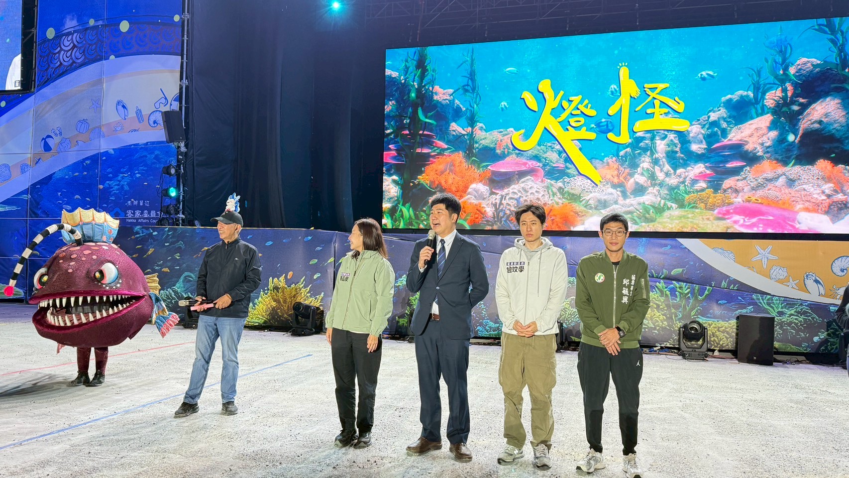 客家委員會副主任委員邱星崴12月13日晚間代表古秀妃主委前往苗栗欣賞客家親子劇《燈怪》演出。邱副主委表示,為呼應賴清德總統推動「公共客家」政策,客委會持續讓客語在各公共領域中被聽見、被看見,也期盼透過《燈怪》的巡演,讓客語向下扎根。