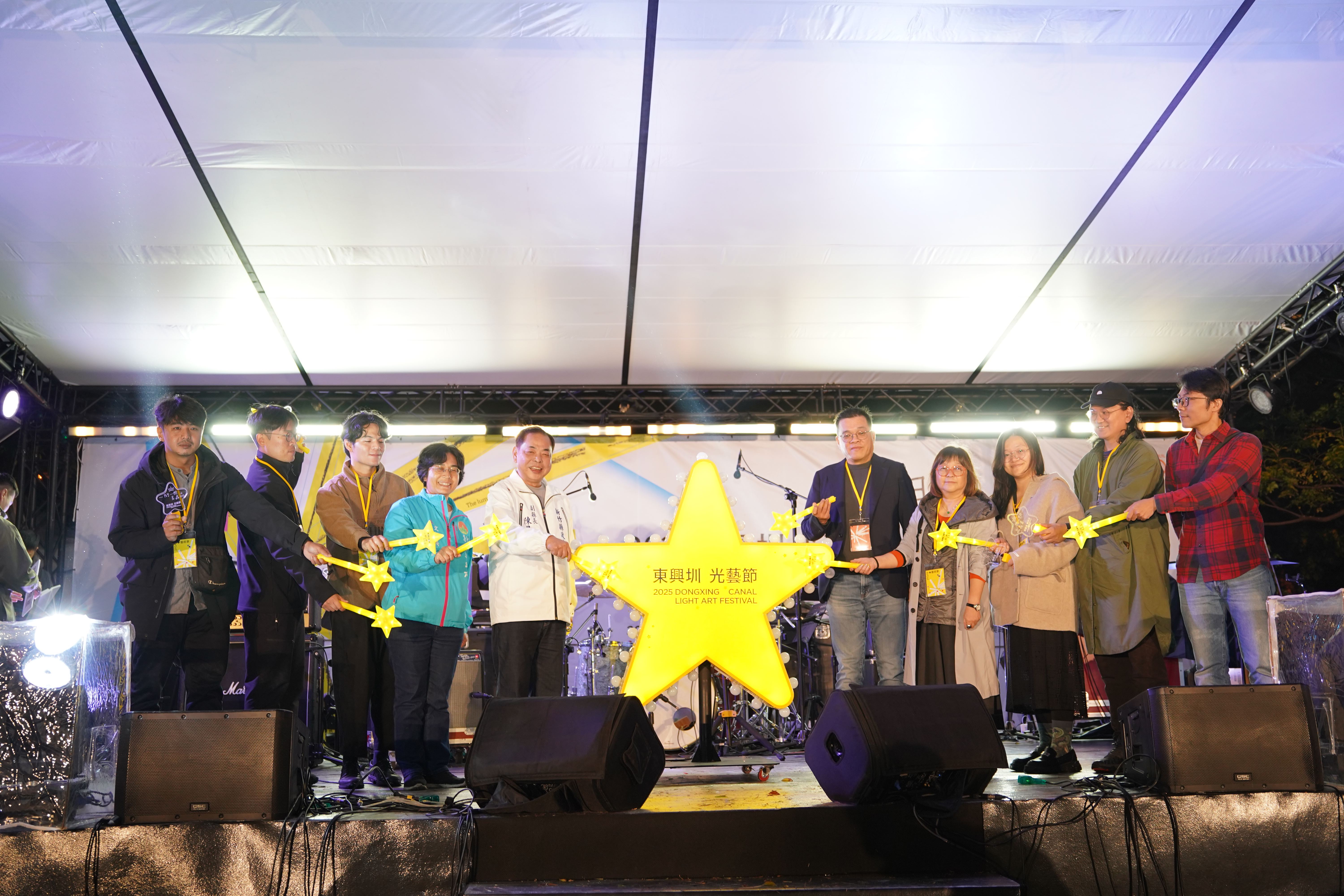 2025東興圳光藝節12月13日在竹北東興圳公園盛大開幕,副縣長陳見賢代表縣長楊文科出席點燈儀式,隨著星星手燈啟動,沿著水岸分布的8組光藝術作品瞬間亮起,將東興圳夜色化為一條閃爍的星光廊道。東興圳光藝節展期至115年1月4日,每週末皆規劃主題式展演舞台,邀請全國民眾走訪新竹縣,一同見證冬夜裡最美麗的城市風光。