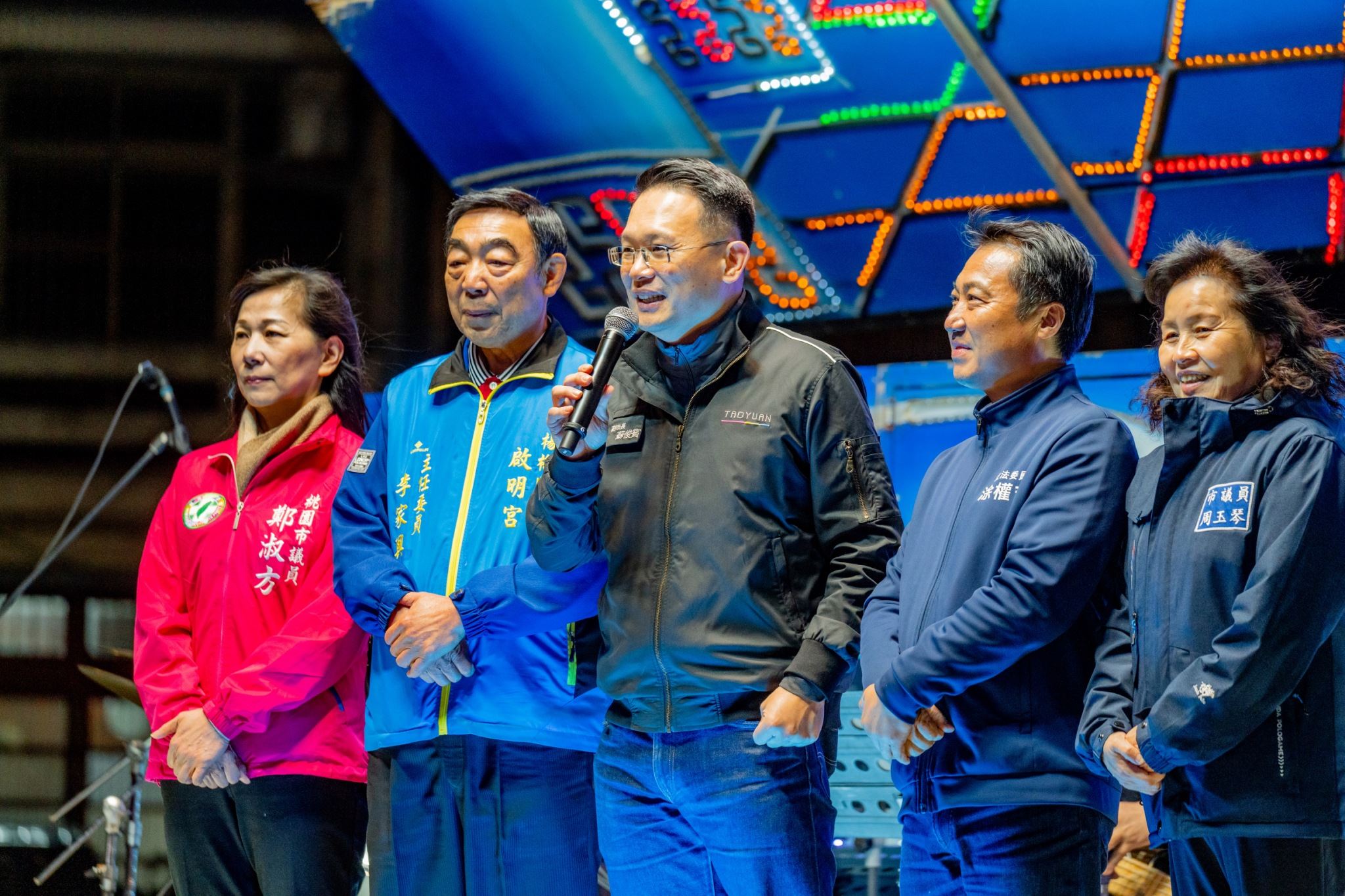 桃園市副市長蘇俊賓今(14)日晚間前往楊梅區,出席「啟明宮慶祝財神殿安座聯歡晚會」。蘇俊賓表示,啟明宮自清光緒二十五年(1899年)創建至今,長年深耕楊梅地方,不僅持續關懷弱勢族群,也大力投入教育資源,市府每年都能感受到廟方滿滿的用心與付出。今日財神殿安座適逢寒夜,仍有許多信眾前來參拜相挺,在這樣的時間與溫度下,大家願意齊聚一堂,正是對啟明宮最真誠的支持,也展現百年信仰凝聚出的真情與溫暖。